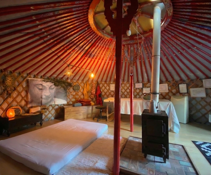 Una auténtica Yurta de Mongolia rodeada de naturaleza en el Bages. Un espacio circular energéticamente único para desconectar del ruido y reconectar contigo.